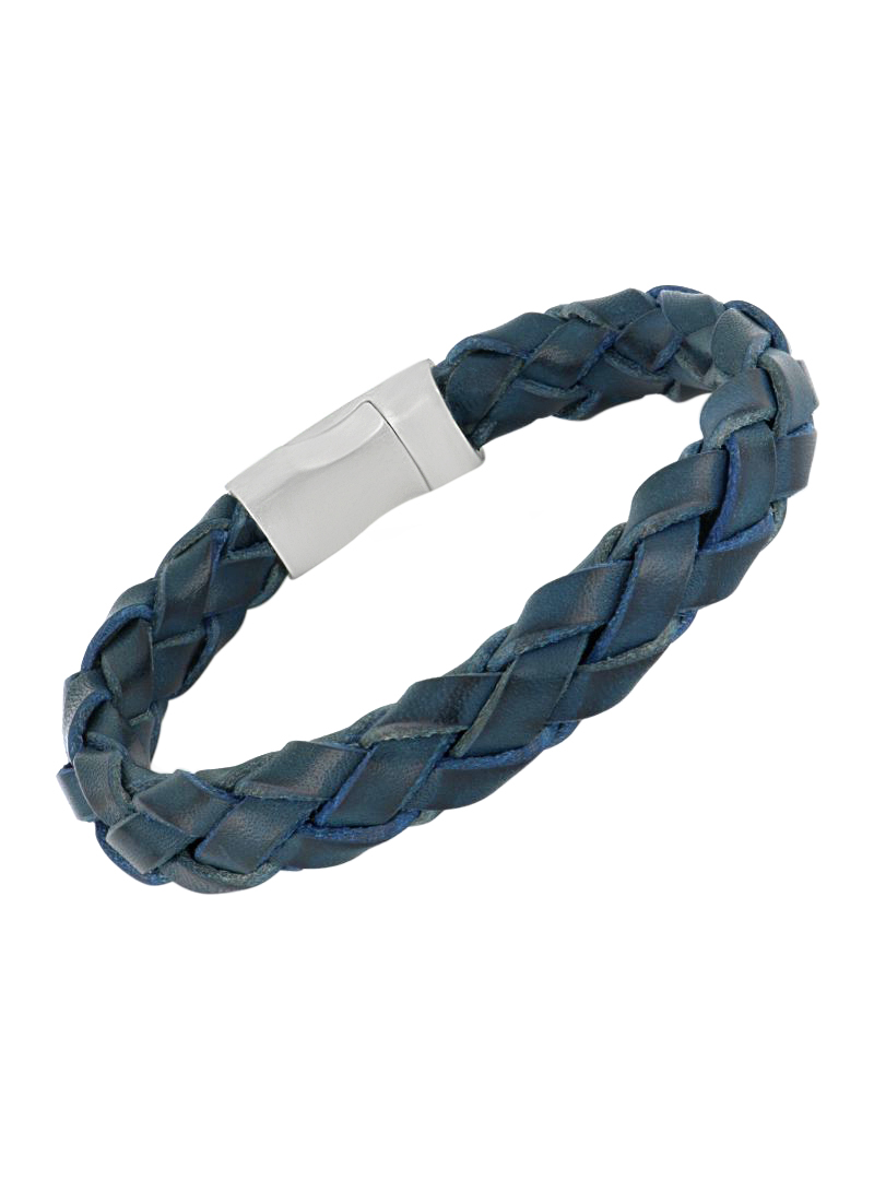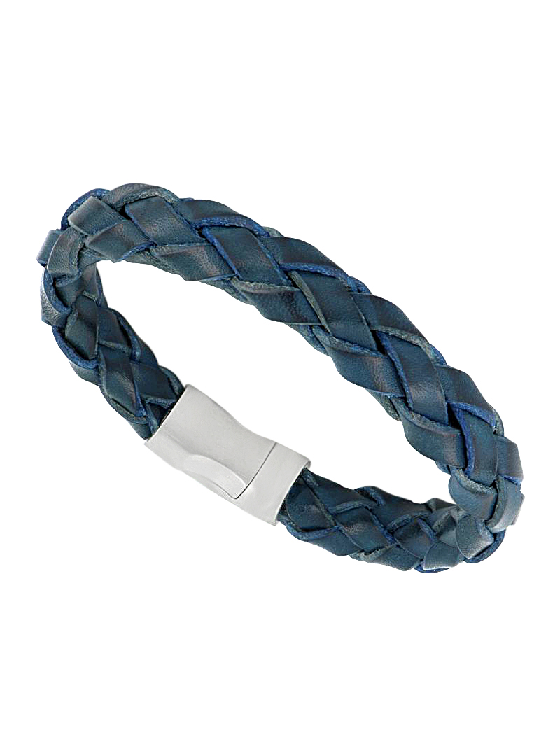 Bracelet en cuir véritable de Taureau tressé bleu. Légèrement extensible.