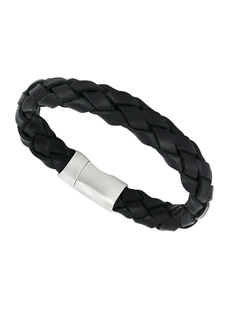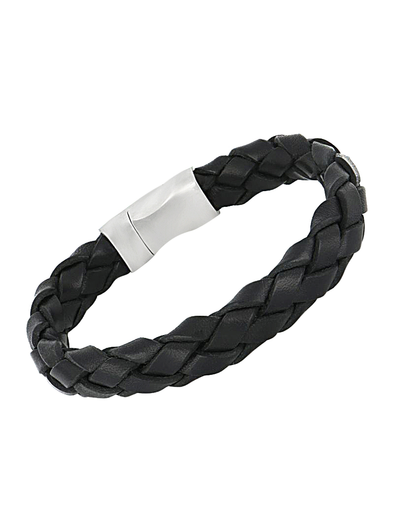 Bracelet en cuir véritable de Taureau tressé noir. Légèrement extensible.