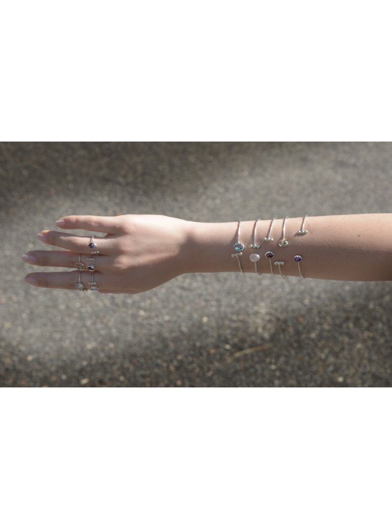 Bracelet ouvert et réglable en argent 925 avec une pierre sertie en Aigue-Marine.