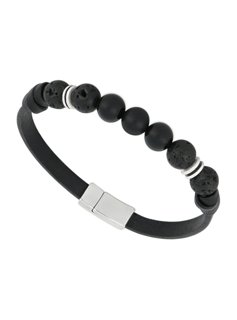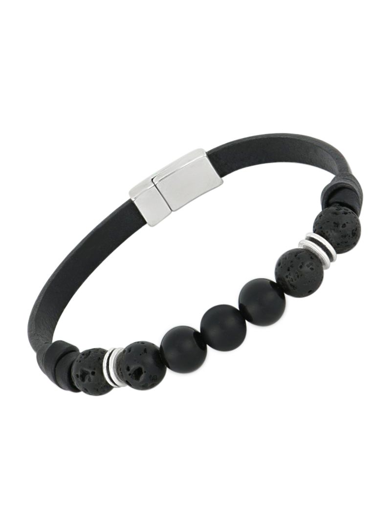 Bracelet en cuir noir, assorti avec des perles en Onyx et en Lave volcanique.