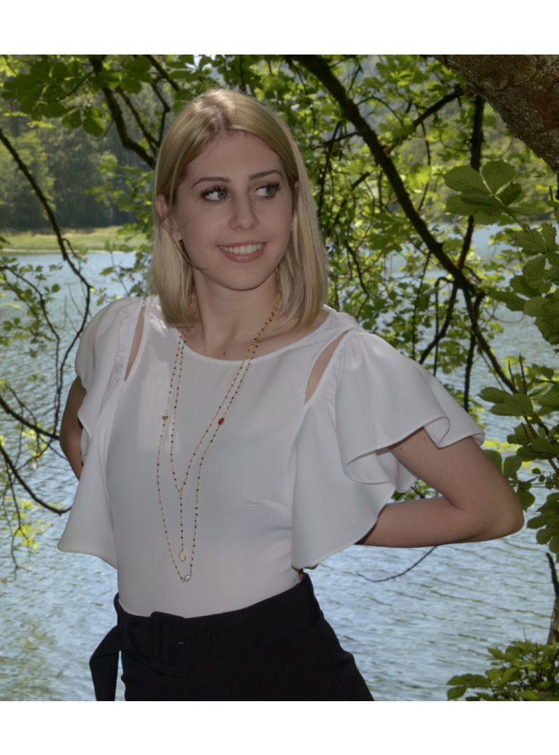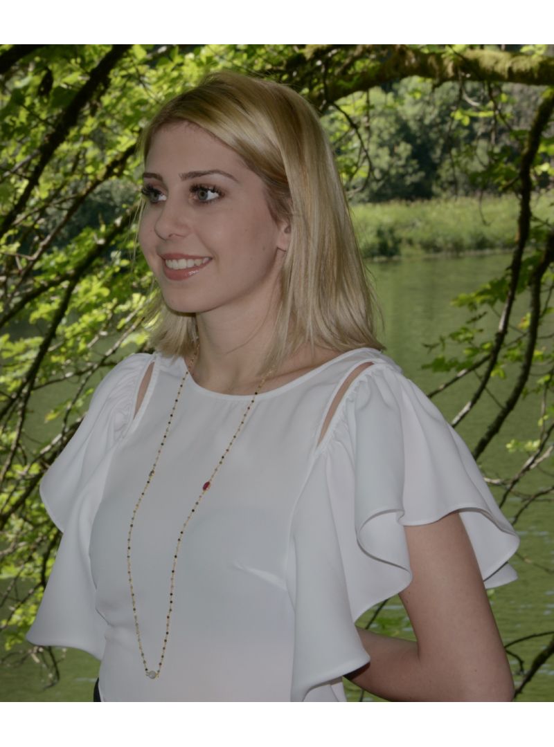 La noire au chakra racine, la rouge au chakra sacré, le jaune au chakra du plexus solaire, la tourmaline rose et melon d’eau au chakra du cœur, la bleue au chakra du 3ème œil et la tourmaline transparente et incolore au chakra couronne.