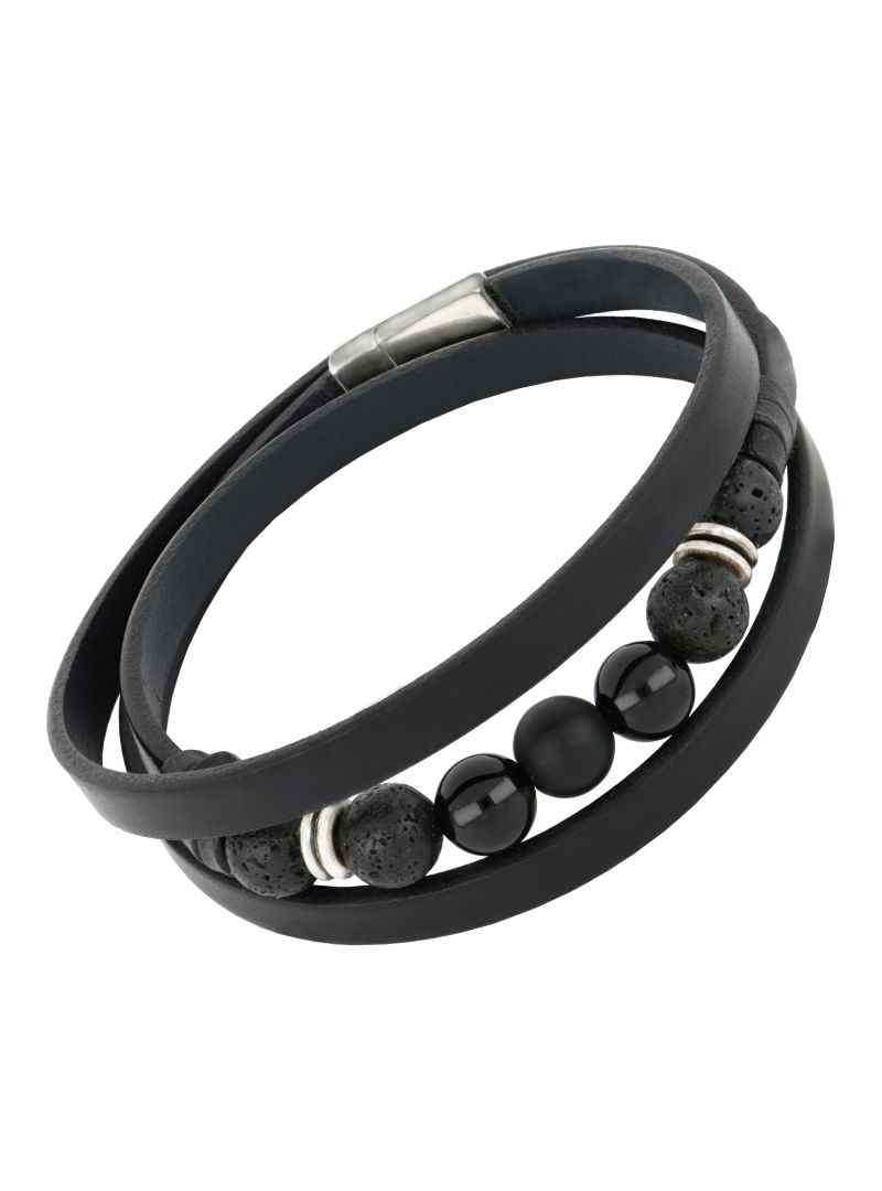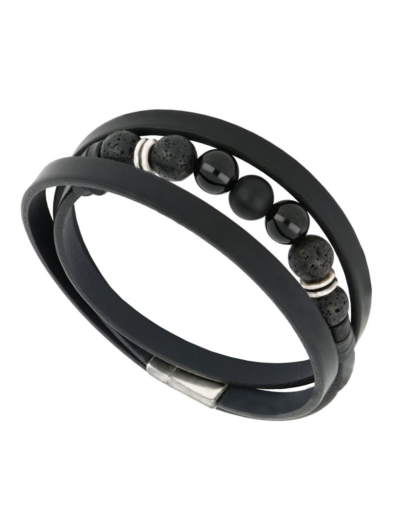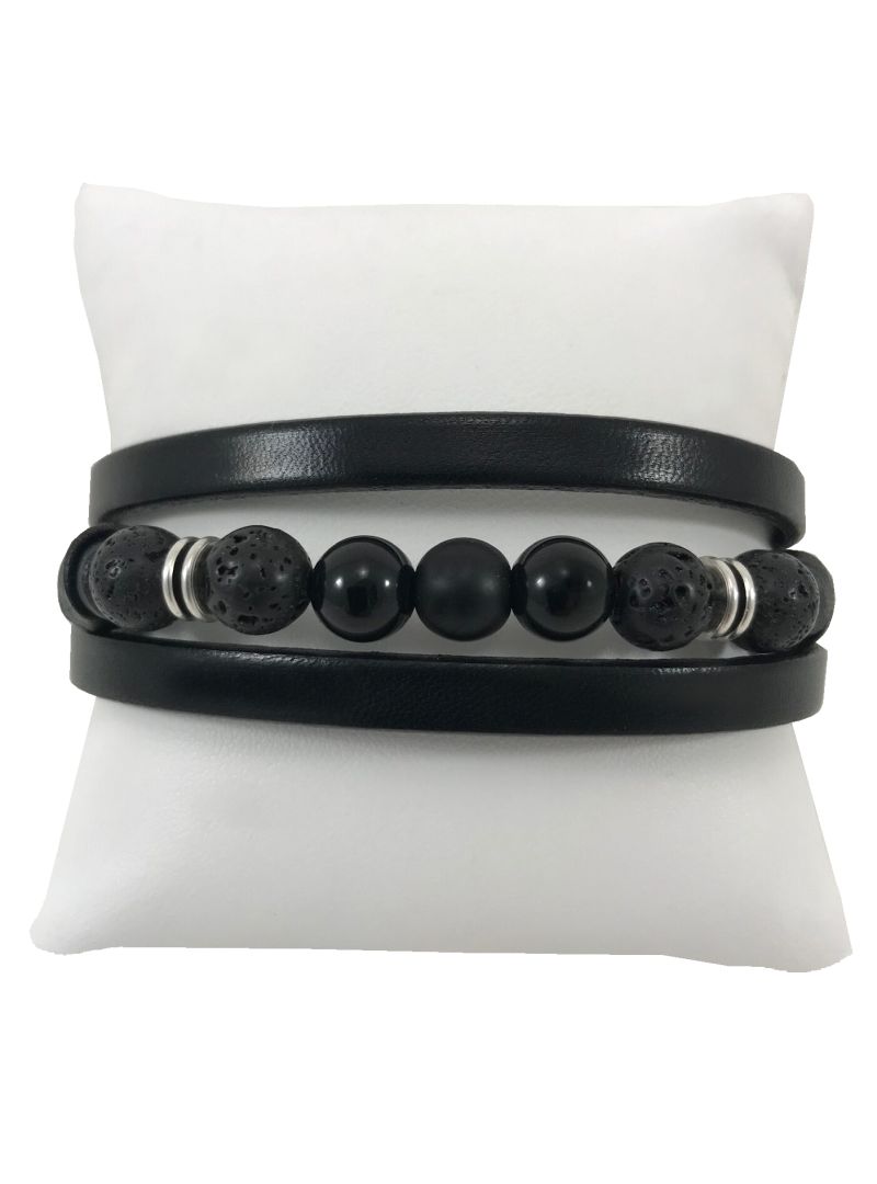 Bracelet en cuir noir, assorti avec des perles en Onyx et en Lave volcanique